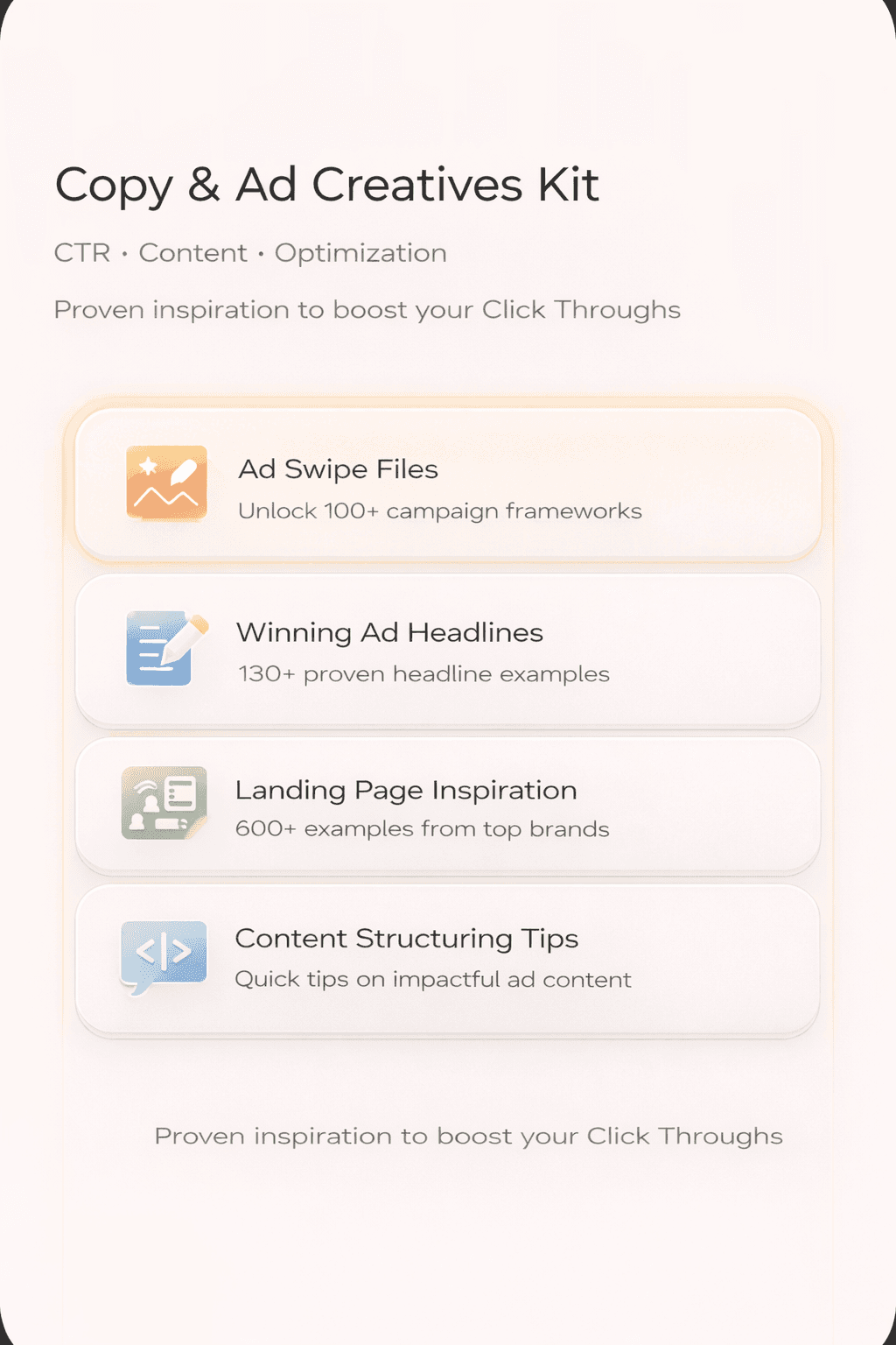 This Ads Toolkit is a culmination of 30,000+ hours of learnings, failures, successes in scaling ads.