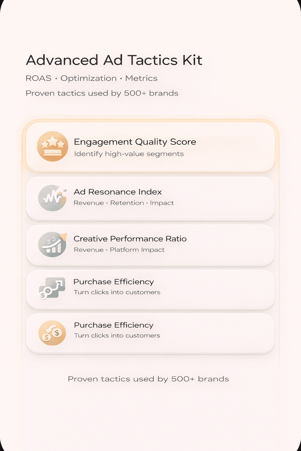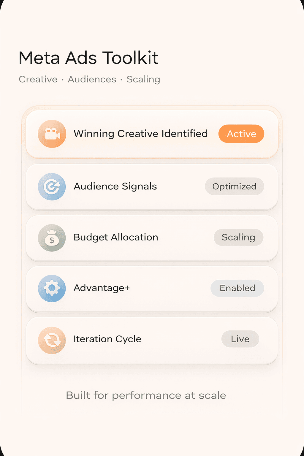 Apply our unique ROAS optimization methods, used to hit the top 10% of eComm FB ads scores.