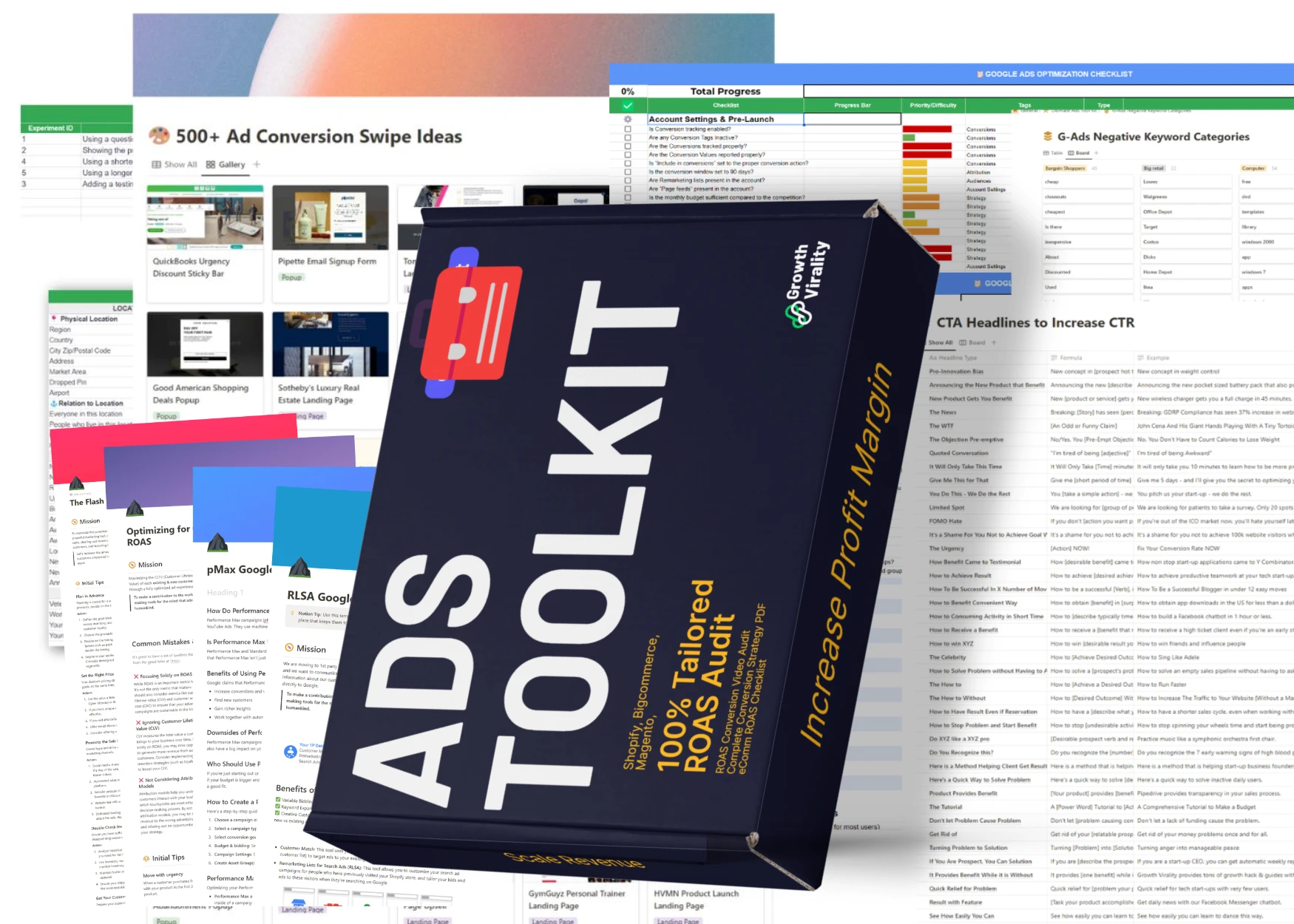That’s why we have decided to build the Ads Toolkit and include important, step-by-step action items into a simple Google Sheet & Notion document.